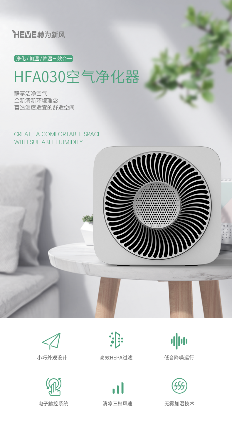 赫為智能空氣凈化器HFA030
