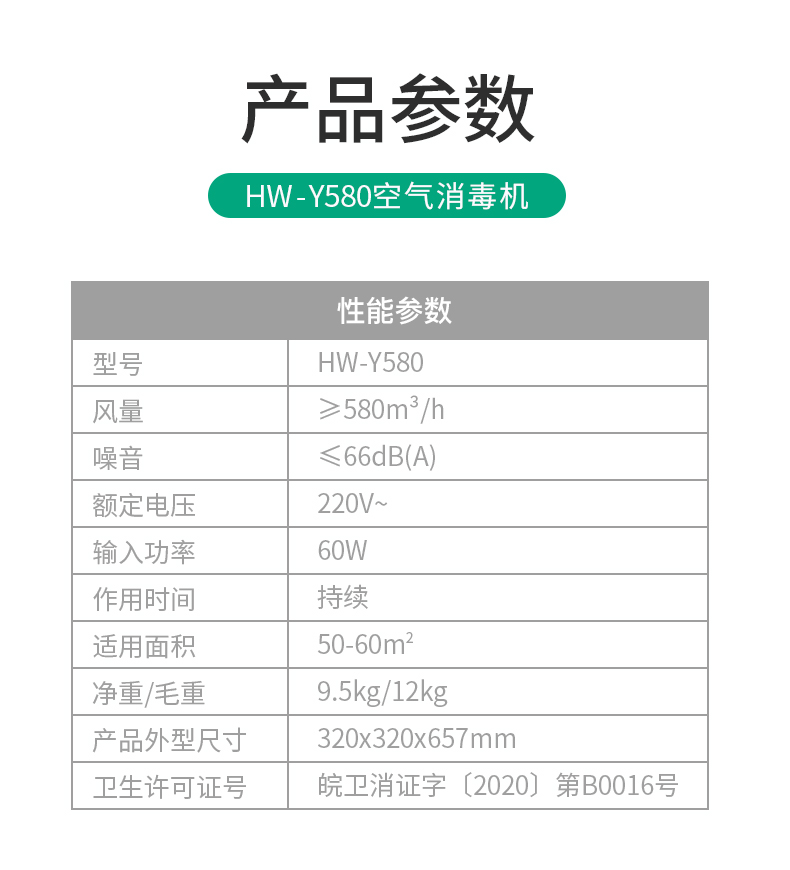 赫為移動(dòng)式空氣消毒機(jī)HW-Y580